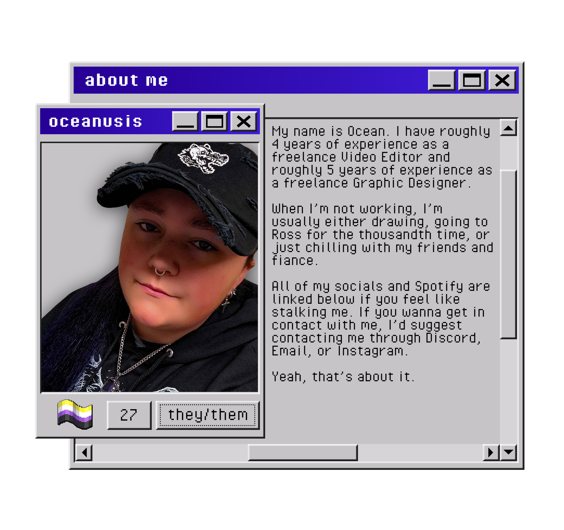 Welcome to the Terms of Service page for Oceanusis (Ocean, They/Their/Theirs). These terms outline the mutual responsibilities, expectations, and policies that ensure a smooth and professional collaboration. By engaging in their video editing services, you are agreeing that you have read, understood, and agreed to the guidelines outlined below. Please review each section carefully to ensure a clear understanding of all guidelines. Your satisfaction and trust are top priority, so if you have any questions regarding any of the guidelines, don't be afraid to ask.
